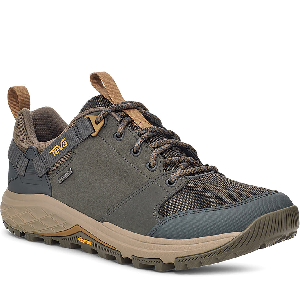 A low-pro take on the high-top Grandview GTX, this waterproof men's hiker features the same universal heel lock system, reengineered to accommodate a lower profile. Tackling day hikes and weeklong excursions with the same rugged dependability, this premium hiker combines waterproof leather and quick-dry mesh with a Gore-Tex waterproof bootie to seal out the elements.