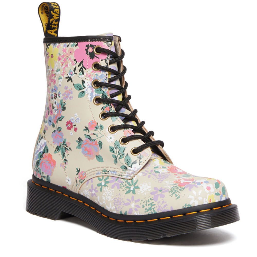 Born on 01.04.60. Named the 1460. Over six decades, the 8-eye work boot has become iconic. A mashup of past and present, the boots are built from durable Backhand leather and marked with classic Dr. Martens DNA: yellow welt stitching and a scripted AirWair heel loop. This women's boot has a slimmer and more tapered footbed.