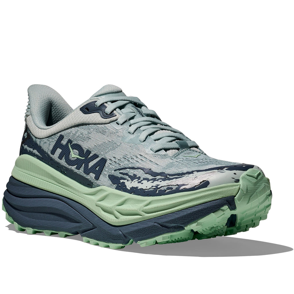 • Max cushion from street to summit.If you’re going to pack just one pair on your next adventure, this is it. Known as the Swiss army knife of shoes – thanks to its road-to-trail agility – the Stinson 7 cues up the perfect blend of plush cushioning and versatile traction. Made to conquer any terrain, you’ll find pavement, trail, and gravel are no match for the Stinson’s stabilizing H-Frame, rubber toe cap, and multi-directional lugs.