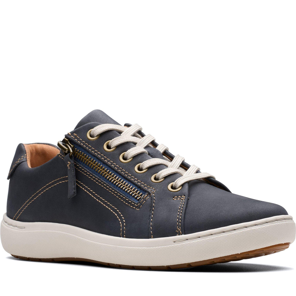 Stay light on your feet with the Nalle Lace. Supple navy nubuck uppers bring sports-inspired style to Clarks' iconic craftmanship, resulting in a contemporary sneaker that's ideal for a modern life. Our supportive Contour Cushion footbed combines with a high-grip rubber sole for underfoot comfort on those busy days.