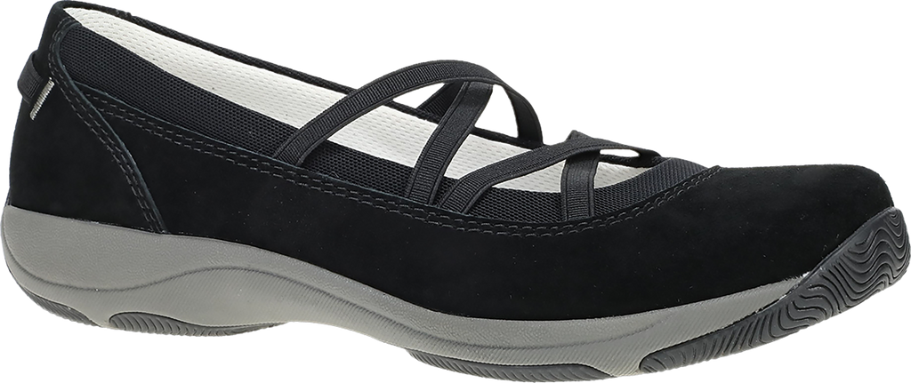 Chrome-free leather and recycled nylon. Suede treated with 3M Scotchgard for stain resistance