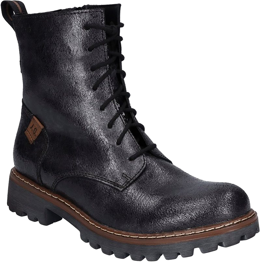 Sassy black patent combat boot with insider and warm lining to keep your feet cozy. Lug bottom look yet lightweight construction.