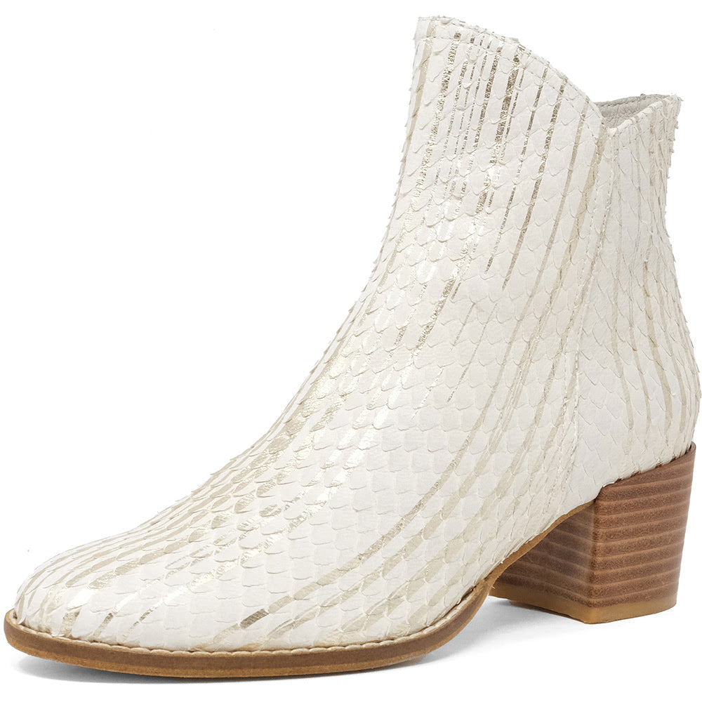 • Made of soft premium leather, these ankle boots are destined to be your new go-to pair. Available in several finishes, MOCKAS by Django & Juliette has a classic silhouette resting on a sturdy block heel.