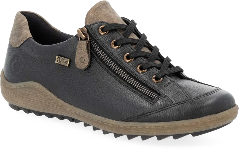 Style and comfort - the dream team of the season! The Remonte lace-up shoes are an absolute must-have in every Remonte lace-up shoe cupboard. In addition to the lacing, this model is equipped with a zipper that provides optimal support. The grippy and cushioning sole, together with the padded and removable insole, ensures every step to be pleasantly cushioned. The water-repellent RemonteTEX membrane protects the feet from wetness and wind. Wait for what?
