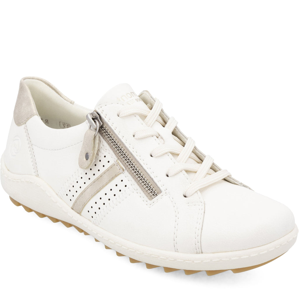 Elegant and timeless in design, yet practical and comfortable. These lace-up shoes by Remonte, made of smooth leather, are the perfect everyday footwear in white. The lacing complements the zipper for functionality and comfort. The design is complemented by the extra soft exchangeable foot-bed, with a flexible and cushioning profile sole. Thanks to the light micro suede lining, ideal comfort is guaranteed!