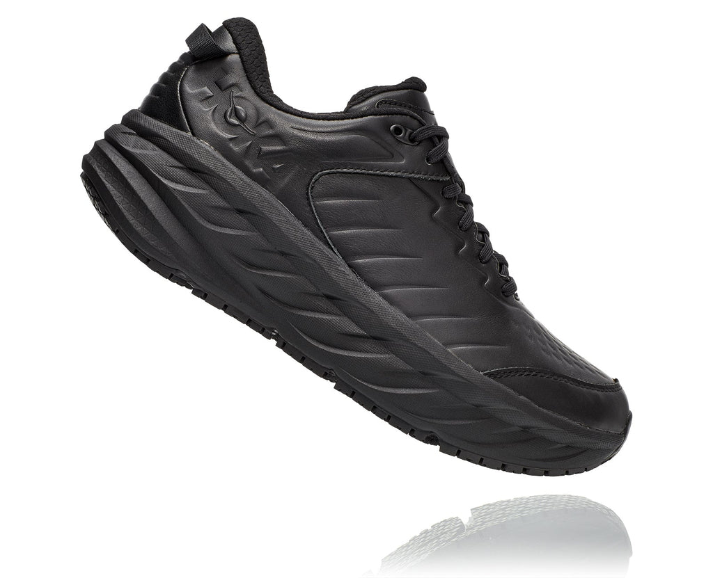 One of the first line extensions of the beloved Bondi family, the new Bondi SR takes the most cushioned shoe in the HOKA road-shoe lineup and reworks the silhouette to handle the demands of daily life. Engineered with an EVA midsole for plush, all-day cushioning, this workplace warrior has been updated with water-resistant leather and a slip-resistant outsole. Boasting a proprietary outsole compound tested against industry standards, the Bondi SR features an ultra-grippy, full ground contact rubber that stands up to the service industry and medical field alike.