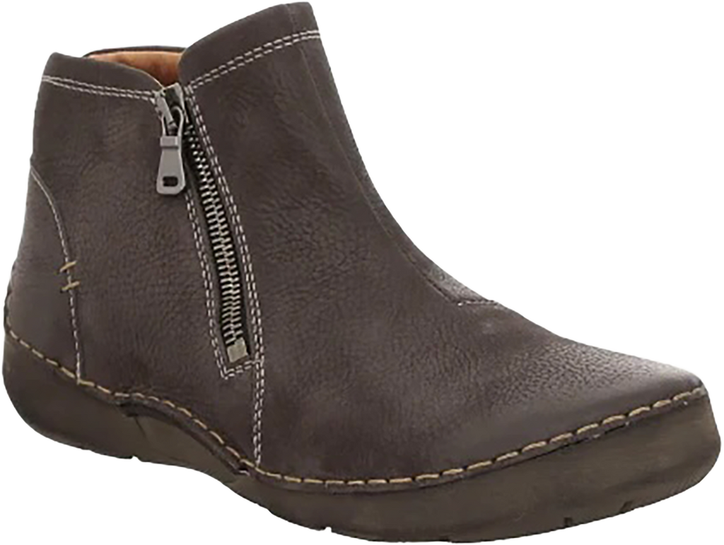 • Casual low bootie great for all day wear. Double zipper for easy entry. Oiled nubuck leathers. Flexible, cushioned insole.