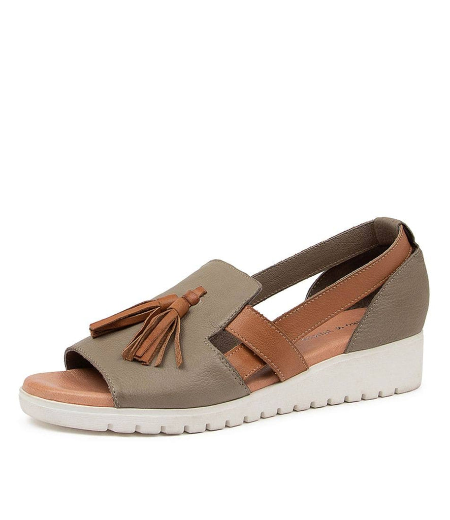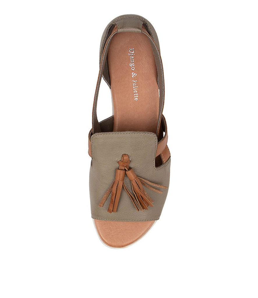 Fall in love with MAISY by Django & Juliette. Resting on a contrasting wedge sole with stylish notched detail, this casual slip-on shoe features a unique loafer-inspired upper with a traditional tassel accent for a preppy touch and rendered in elegant multi-toned leather.